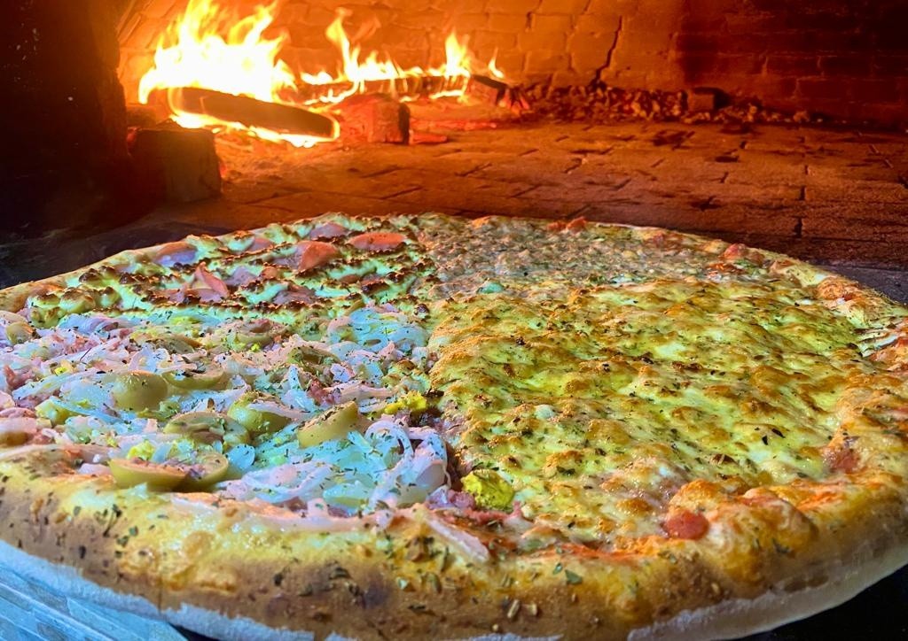 Molho De Tomate, Mussarela, Oregano, Cebola, Linguiça Blumenau