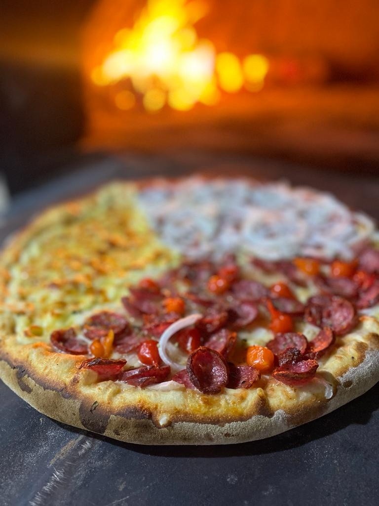 Molho De Tomate, Mussarela, Calabresa, Oregano, Cebola, Alho E Óleo